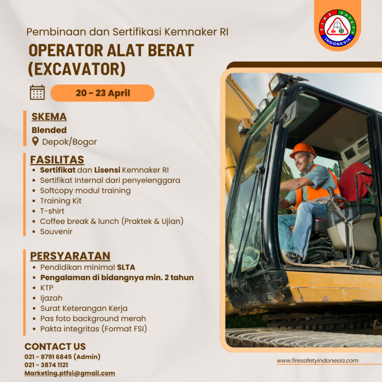 Program Pelatihan K3 Operator Alat Berat dirancang untuk membekali peserta dengan pengetahuan dan keterampilan dalam mengoperasikan alat berat seperti excavator secara aman, efisien, dan sesuai prosedur. Pelatihan ini mendukung implementasi Undang-Undang No. 1 Tahun 1970 dan Permenaker No. 8 Tahun 2020, sekaligus meningkatkan produktivitas serta keselamatan kerja di lapangan.