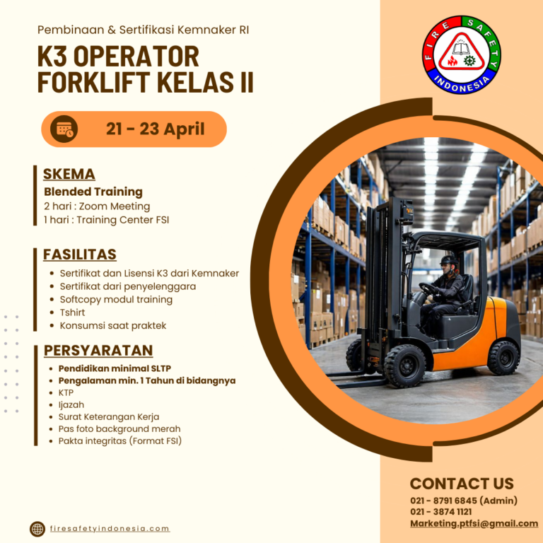 • Mengerti terhadap Keselamatan Kerja (K3) saat melakukan pekerjaan penggunaan alat (Forklift) yang aman, efisien, dan produktif