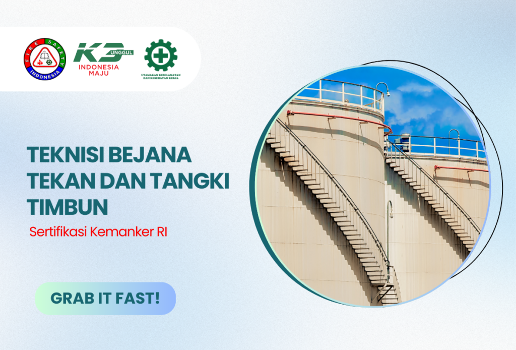 Training K3 Teknisi Bejana Tekanan dan Tangki Timbun ini bertujuan untuk mempersiapkan para teknisi yang kompeten dan profesional, yang mendapatkan pengetahuan dan keterampilan dasar yang dibutuhkan agar dapat mempersiapkan, menyelesaikan, serta memastikan pekerjaan teknisi bejana tekanan dan tangki timbun dengan aman.